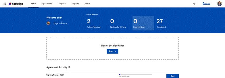 Click on the DocuSign Tile, and it should automatically log you into DocuSign.