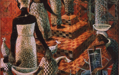 Clara Ugbodaga-Ngu’s Yoruba Palm Wine Seller is one of four paintings now on display at Tate Modern in London, courtesy of HU Museum. As part of Tate’s Nigerian Modernist Exhibition, HU Museum has also placed on loan two paintings by Akinola Lasekan and a painting by Simon Okeke. The works are from our Modern African collection donated in 1967 from the Harmon Foundation.